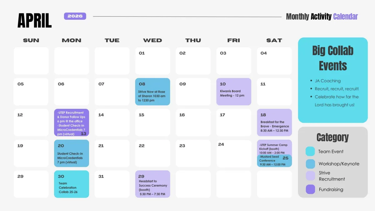 See the upcoming events coming this month and what is your next venture with Strive Now.